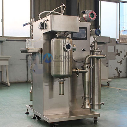 首先在開啟風機,加熱模塊,干燥塔體內充入氮氣,要被干燥的液態物料經輸液泵輸送至噴頭處,液態物料被霧化器霧化成細小液滴,液滴在干燥塔內與熱氮氣進行充分的熱交換,物料中的液態部分被瞬間蒸發,固態部分形成的粉狀物料沉于塔底,*后經過旋風分離器進行氣固分離至物料收集瓶,溶劑經過冷凝器回收,氣體循環利用。